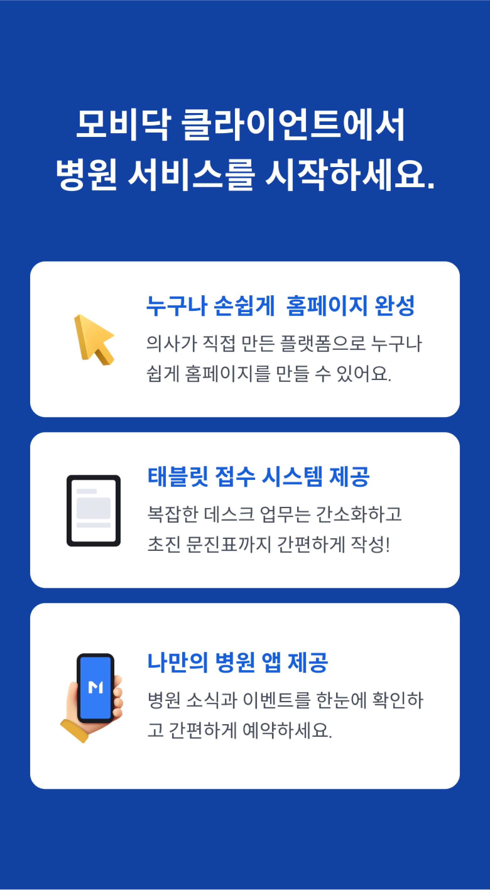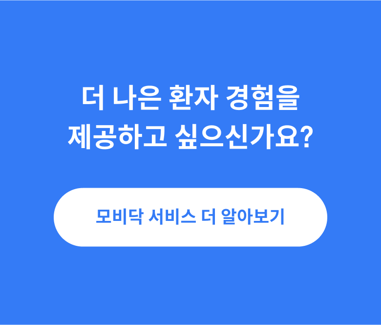 더 나은 환자 경험을 제공하고 싶으신가요? 모비닥 서비스 더 알아보기