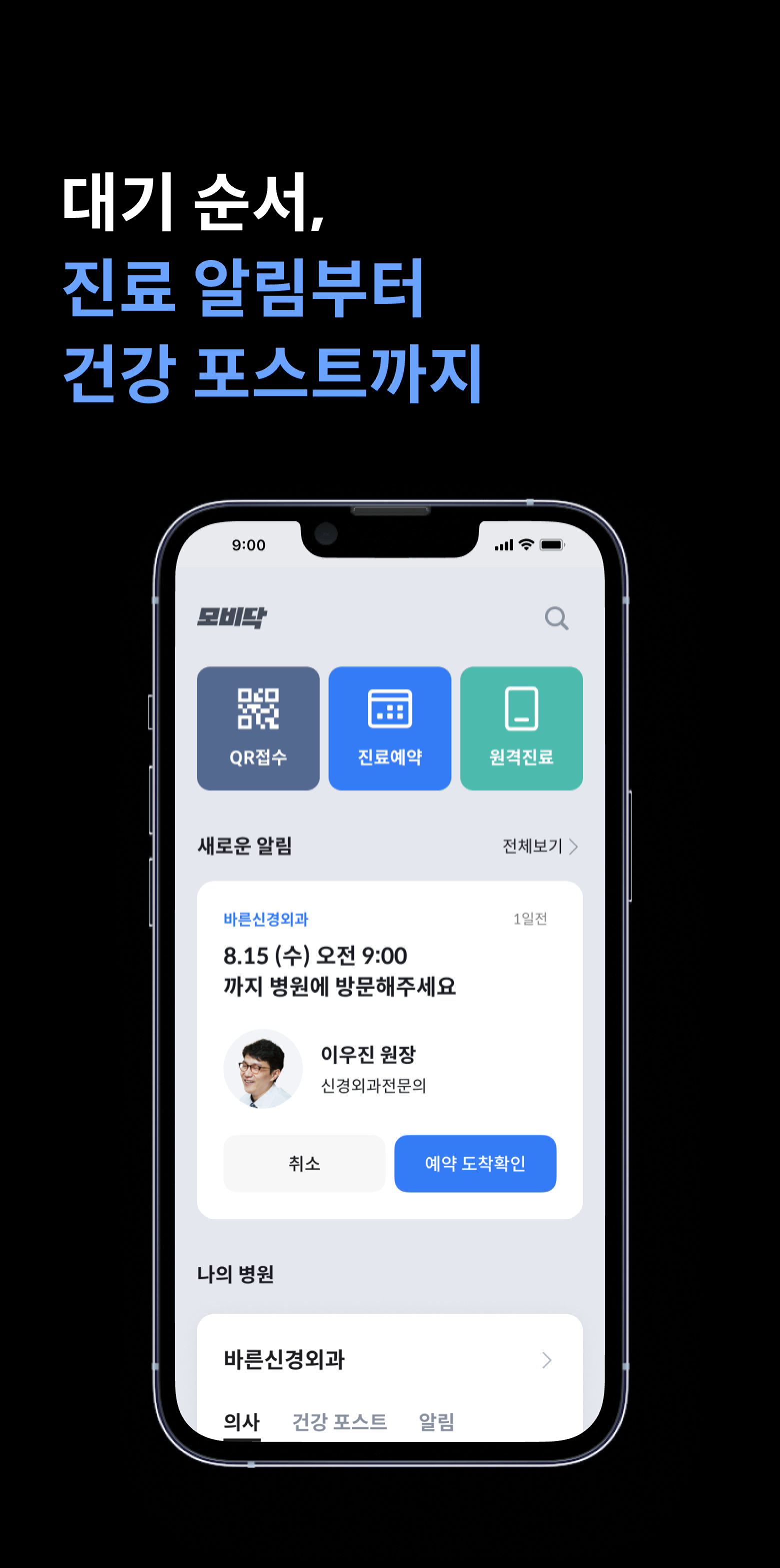 한 눈에 보는 홈 진료 알림부터 건강 포스트까지
