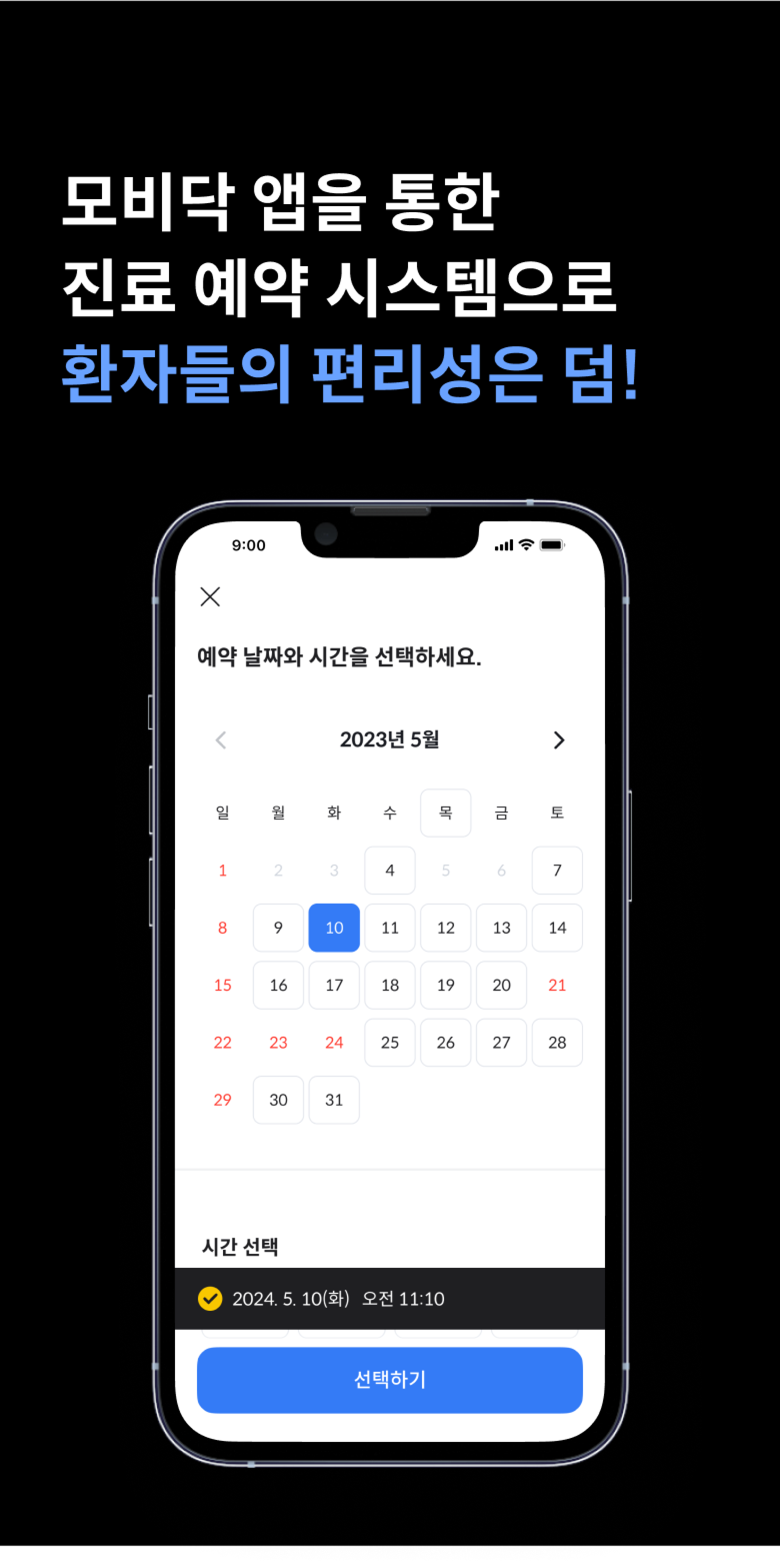 원하는 날짜, 원하는 시간에 간편하게 진료 예약